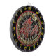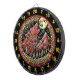 This captivating dartboard featuring a howling wolf under the full moon brings a piece of the wild into your home. The detailed artwork, with its rich red, gold, and black tones, symbolizes the strength and freedom of the wolf, making it the ideal addition to your hunting lodge, fishing retreat, or man cave.