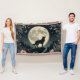 A versatile piece that could be used as a blanket or wall tapastry showcases a majestic wolf howling beneath a moonlit sky, surrounded by detailed forest floral motifs. Woven fabric with fringed edges, it’s perfect for adding a cozy, boho rustic touch to your space or as a stunning wall hanging. Ideal for wildlife lovers, cabin decor, or anyone who appreciates the call of the wild.