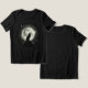 This atmospheric design features the silhouette of a lone wolf howling atop a hill, set against a breathtaking full moon glowing with ethereal energy. Surrounded by intricate celestial symbols and constellations, the moon radiates a dreamlike aura, turning the entire scene into a magical, cosmic encounter. The monochromatic black-and-white palette emphasizes the mystical contrast between shadow and light, giving the artwork a timeless and otherworldly quality.