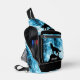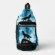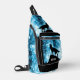 Howling Wolf Winter snowy blue black Custom name Sling Bag. Cool fashion accessory for men. Abstract geometric winter snowy blue and white smoke with black wolf silhouette.
