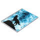 Abstract geometric winter snowy blue and white smoke with black wolf silhouette.