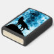Howling Winter Wolf snowy blue smoke Abstract Zippo Lighter. Durable metal accessory gift for him or her. Abstract geometric winter snowy blue and white smoke with black wolf silhouette.