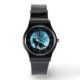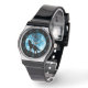 Howling Wolf Winter snowy blue smoke Abstract Wrist Watch. Cool men Accessories with Abstract geometric winter snowy blue and white smoke and black wolf silhouette. Monogram Personalize with your custom initial and name.