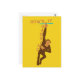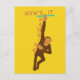 Ask them what's up in fun style with this postcard featuring an illustration of a monkey hanging from a bar along with the slogan HOW'S IT HANGING The brown and tan colored graphic and lettering are set against a bright yellow background. The back of this postcard is blank for your to write in your own message.