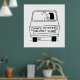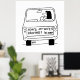 Funny poster. Woman driver's car has a sign on the back saying "How's My Wife's Driving?". Husband is worried about his wife driving her car. Wife in her car.