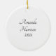 Lightweight, smooth, pure white ornament with nice sheen. Perfect size to be seen from across the room ... and to attract closer inspection! Price was great for ordering enough for the whole family! Clear, bold black design just as requested. Matches the order exactly. Just so nice!