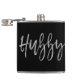 Hubby Black Flask with Silver Foil Typography. The Hubby flask make a perfect wedding or honeymoon gift for the groom and matches the wifey flask for the wife.