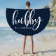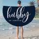 Celebrate your groom status with this personalized "Hubby" beach towel in a chic navy blue and white design. Perfect for honeymoon trips, beach days, or poolside lounging, this towel features the groom's name for a custom touch. Made with soft, absorbent material, it's an essential accessory for newlyweds. Ideal as a wedding, engagement, or anniversary gift, this stylish towel is a memorable keepsake for the beach-loving couple.