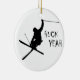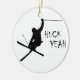 Lightweight, smooth, pure white ornament with nice sheen. Perfect size to be seen from across the room ... and to attract closer inspection! Price was great for ordering enough for the whole family! Clear, bold black design just as requested. Matches the order exactly. Just so nice!