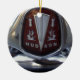 Lightweight, smooth, pure white ornament with nice sheen. Perfect size to be seen from across the room ... and to attract closer inspection! Price was great for ordering enough for the whole family! Clear, bold black design just as requested. Matches the order exactly. Just so nice!