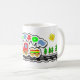 Hudson Mug or Hudson Cup. Cute Design with Balloons with name of child named Hudson. Has Choo Choo Train, Tracks, Trees and Smiley Sun. Great First Cup for Child.