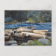 A fine art postcard featuring - The Hudson River (1892) by the American artist Winslow Homer (1836-1910). An Adirondacks landscape depicting a man observing deer in the distance behind a pile of logs.