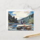 This postcard is designed with the artwork of Winslow Homer, Titled Hudson River Logging, completed in 1897. It captures the beautiful scenery of the Hudson River, New York State, and the Adirondack Mountains.