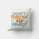 This vibrantly colored throw pillow pleads for cuddles with the playful message "Don't Throw me away" splashed across it in a rainbow of colors. The multicolored text adds a touch of whimsy, making it a perfect addition to any playful or eco-conscious home. Whether you're looking for a comfy companion for movie nights or a statement piece for your couch, this pillow reminds you to cherish the things you love.