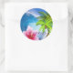 Huge Ocean Wave Orchid Palm Tree Classic Round Sticker