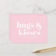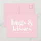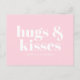 Hugs & kisses pink white modern bold typography postcard