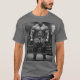 My 11 yo wore adult XL (5’7” 165#). The 8yo is small framed. She wore adult small and tied it in the back. Grandma wore adult large with long sleeve shirt underneath. Tall girl adult medium. Dark haired male adult large. Good quality dark Heather gray, Gildan brand shirt. -it was next up from basic choice and cost about $20 per shirt. Not too thick or thin. Washed and dried well, no major shrinkage. Not see-through. Can wear a bra under it fine. Screen print is just as shown and well done, front and back.