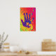 This brighter than bright colorful modern poster design features an imprint of a human hand against a bright red background shot thru with green, blue, yellow, purple and more red. The handprint is mostly in shades of blue. Depending on how you view the design, it could be a protest statement against oppression or an admission of guilt on the part of humankind. You can easily customize the design by adding your own statement or slogan. Simply use the customize button to add text. The poster would be the perfect gift for students, young people or anyone with an ax to grind.