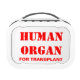 Human Organ in transportation for A transplant lunch box. This lunch box will make people wonder what your eating for lunch. Liver Transplant, Heart Transplant, Kidney Transplant what ever joke you want to add to it This Lunch box can be customized.