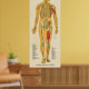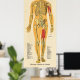 Posterior view of the bones of the male body. Bones and ligaments of the elbow, knee, shoulder and pelvis. Vintage anatomical illustrations used to create this anatomy chart. labeled with descriptions.