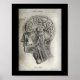 Vintage illustration of the cross section of the human skull showing the brain, cervical spine, spinal nerves and arteries.