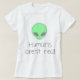 This shirt simply states that humans aren't real, like how we say aliens aren't real. 👽 Anyway this shirt is just a simple funny tee.