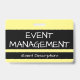 This humble badge design features the message "EVENT MANAGEMENT". A badge like this could perhaps be used to identify that the wearer is an official at an event. [~Z0000307]