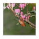 Photo of a hummingbird flying and sipping nectar from some pink bleeding hearts flowers. This picture of a rufous hummingbird can be customized with your own text and printed on many different products.