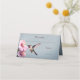 Let receptions guests know where they will be seated with a blue hummingbird and hibiscus wedding reception place card. Place card design features a pair of bright pink hibiscus flowers with a ruby throated hummingbird. Additional wedding stationery available with this design as well.