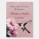 Personalize a unique welcome sign for wedding guests with a Pink Hummingbird and Hibiscus Wedding Welcome Sign. Sign design features a pair of bright pink hibiscus flowers with a ruby throated hummingbird. Personalize with the groom and bride's names along with the wedding date.