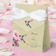 Pass out gift favors to your guests or wedding party with this Yellow Hummingbird and Hibiscus Wedding Favor Box. Favor Box design features a pair of bright pink hibiscus flowers with a ruby throated hummingbird. Additional wedding stationery and party supply available with this design.
