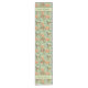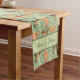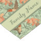 Customize this elegant table runner with a pattern of hummingbirds and orange lilies on a green background with your family name.