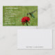 Business cards with a beautiful ruby-throated hummingbird feeding on a red zinnia with a green background. Great gift for a bird lover! Digital photography by Sue Melvin
