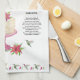 Pretty kitchen towel featuring a recipe for a delicious hummingbird cake and Anna's and Broad-billed hummingbirds hovering around a hummingbird cake and flowers. All watercolor images by C. Dobbins.