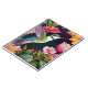 Acrylic painting of a hummingbird surrounded by a colorful variety of flowers. This bird artwork is bright and cheery! Wonderful spring or summer floral theme for bird lovers.
