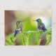Postcard featuring a couple of little green thorntail hummingbirds having a conversation on a large fern leaf in a Costa Rican cloud forest -- A nice way to show your hummingbird love or send a greeting to hummingbird or Costa Rica lovers. Photo taken in Catarata del Toro, Costa Rica.