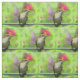This animal fabric features a repeating pattern of a young hummingbird. This lovely bird is sitting on a metal bar, ready to dive into the nectar from the flowers surrounding him. The background is a soft, lovely palette of pink, red, gold, yellow and green.