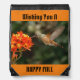 Pretty, photo of a hummingbird feeding off of an orange flower is featured on this drawstring backpack. With message, "Wishing You A Happy Fall", this makes a great backpack for work, school, shopping and more!