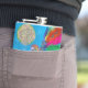Well made flask, a little better than I had expected. Flask came in clear plastic box which gave it a nice presentation when I took it out of the zazzle packaging. Image is not printed on flask but on sticker. Don't know how this will hold up I haven't used it yet. This would make a Great gift! I plan to purchase more for friends! Cheers. I thought a little brighter than computer. Very crisp, writing wasn't