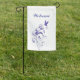 Flag bracket is super easy to assemble. There is a prong fork that goes into the ground. I dug a shallow hole to bury the prongs and still had enough height. Reinforced stitching on for the flag opening. Colors are true to the website. Mona Lisa's sign with the text is easy to read, the text is clear and not blurry.