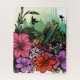 This vibrant graphic design captures the essence of springtime in a lush garden, where a delicate hummingbird flits gracefully among a tapestry of colorful flowers. The scene is bursting with life, featuring a rich palette of blooming blossoms in shades of pink, yellow, and purple, contrasted by the deep greens of flourishing trees that sway gently in the warm breeze. Sunlight filters through the leaves, casting a golden glow over the entire landscape, highlighting the iridescent feathers of the hummingbird as it hovers, poised to sip nectar from a nearby bloom. This enchanting portrayal invites viewers to immerse themselves in the beauty of nature, evoking feelings of joy, tranquility, and the wonder of the outdoors.