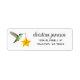 Cute Holidays return address label featuring a female Anna's Hummingbird carrying a star ornament on a white background. Personalize it by adding your name and address. The font style and size can be changed by clicking on "Edit using design tool."