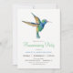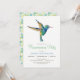 Hummingbird housewarming party celebration invitation. Invite features green and blue Hummingbird and floral pattern.