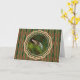 My original photograph of a hummingbird hovering in flight, processed in a slightly illustrated and painterly style and placed on a vintage wave background in a circle framed shape. This card is blank inside and can be used for any occasion and gives you plenty of room to write a heartfelt letter to anyone.