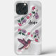 Personalize this Unique "One of a Kind" Hummingbird iPhone Case! It Features an Adorable Hummingbird Sipping Nectar from Large Beautiful Pink & Purple Flowers... on a White Silk Background!
