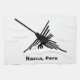 Famous Nazca Lines hummingbird in black with text. Image from the Nazca desert, Peru.
