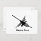 Famous Nazca Lines hummingbird in black with text. Image from the Nazca desert, Peru. Custom postcards in black and white.