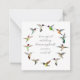 Unique note card featuring a delicate wreath of North American hummingbirds such as Anna's, Allen's, Ruby-throated, Costa's, Calliope, Rufous and Black-chinned hummingbirds and the quote "Time spent watching hummingbirds is never wasted."
