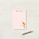 notes has your name at the top of a pale pink page with a red and yellow hummingbird in the lower right corner.
