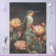 Beautiful night scene of a hummingbird perched on a cactus in bloom.